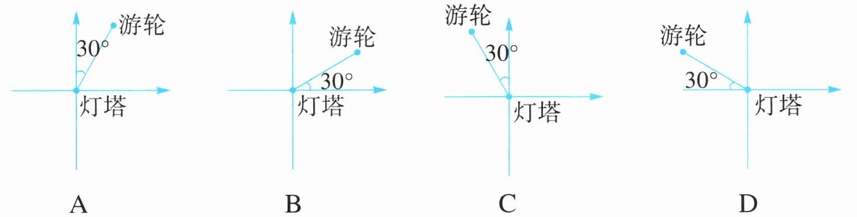 1. 游轮在灯塔西偏北$30^{\circ}$方向,下图正确的是(