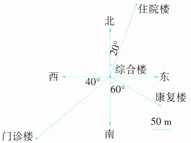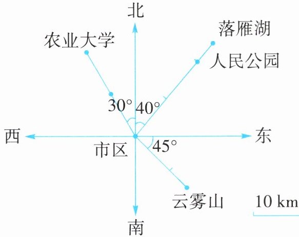 2. 地图上测得绍兴在杭州东偏南$25^{\circ}方向50$km处,则杭州在绍兴(