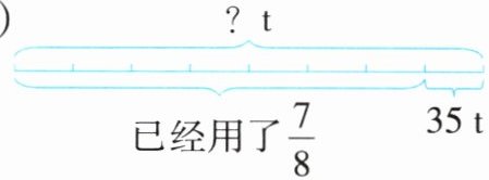 解:把总吨数看作单位“$1$”,已知用了$\frac{7}{8}$,则剩下的占$1 - \frac{7}{8}=\frac{1}{8}$,剩下$35t$。