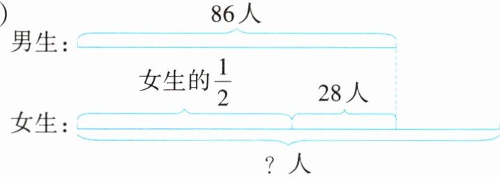 男生$86$人,女生的$\frac{1}{2}$加上$28$人等于男生人数,可列方程$\frac{1}{2}x+28 = 86$。