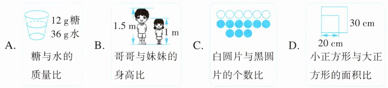 (2)下面四幅图中的比,可以用$2:3表示的是(\quad\quad)$。