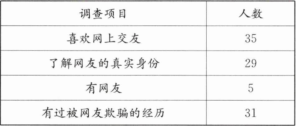 在“讨论怎样交友”这一环节中,大家对“网上交友的利与弊”展开了热烈的讨论。有人赞成网上交友,有人反对网上交友,双方各执一词。为了更好地表达自己的观点,说服对方,请你对这个问题做一个调查,并完成下面的问题。