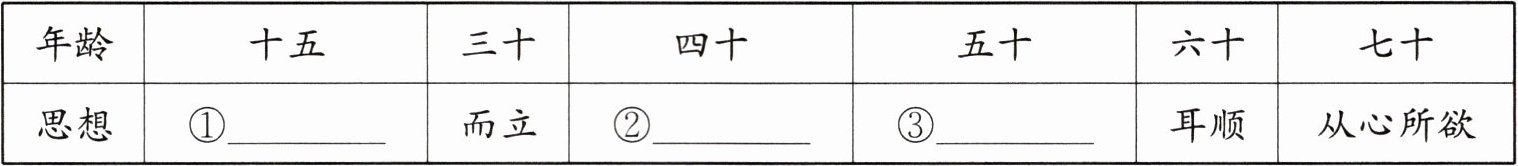 |思想|①______|而立|②______|③______|耳顺|从心所欲|