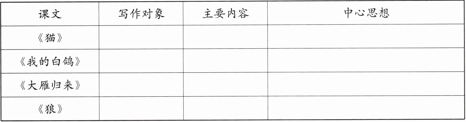 |《我的白鸽》|白鸽|叙述与白鸽相处的经历,如白鸽的到来、生活及可能的离别等|抒发对白鸽的喜爱与怀念,体现人与动物间的情感联系|