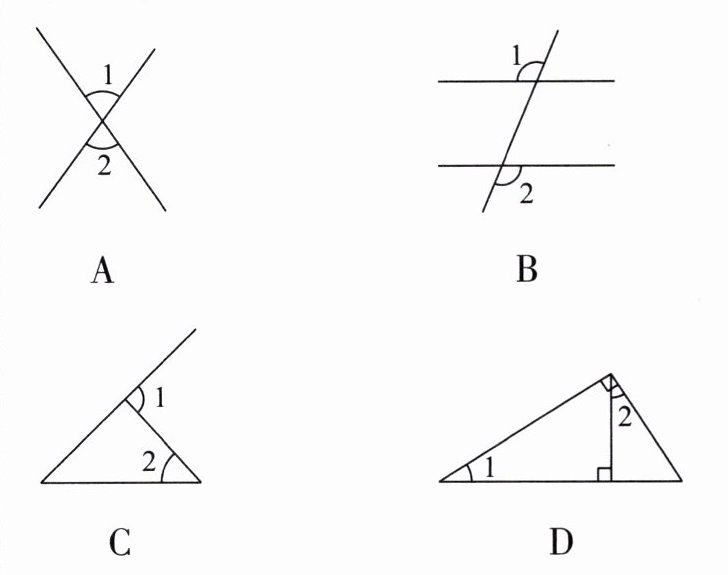 例4 下列图形中,能确定∠1 > ∠2的是( )