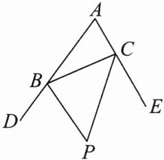 7. 如图,$BP$,$CP是\triangle ABC$外角的平分线,若$\angle P= 60^{\circ}$,则$\angle A$的度数是( )