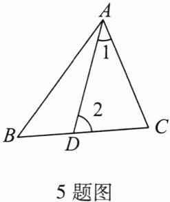 5. 如图,在$\triangle ABC$中,$D为边BC$上一点,若$\angle B= \angle 1$,$\angle BAC= 74^{\circ}$,则$\angle 2$的度数是______.