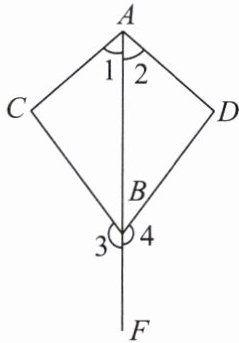 例1 如图,$ \angle 1 = \angle 2 $,$ \angle 3 = \angle 4 $,求证:$ \triangle ABC \cong \triangle ABD $.