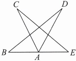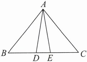 11. 如图,在$\triangle ABC$中,点$D$,$E在BC$上,$\triangle ABE \cong \triangle ACD$。