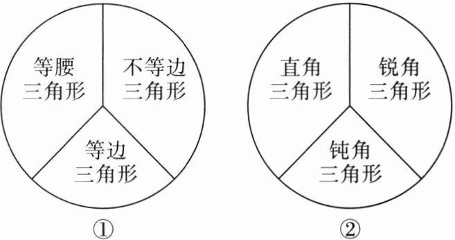 ③三角形按边分类可分为等腰三角形、等边三角形和三边都不相等的三角形;