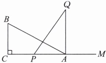 2. 如图,在 $ Rt \triangle ABC $ 中,$ \angle C = 90^{\circ} $,$ AC = 10 \, cm $,$ BC = 5 \, cm $,$ PQ = AB $,点 $ P $,$ Q $ 分别在 $ AC $ 和过点 $ A $ 且垂直于 $ AC $ 的射线 $ AQ $ 上运动,问:点 $ P $ 运动到 $ AC $ 上什么位置时,$ \triangle ABC $ 和 $ \triangle APQ $ 全等?