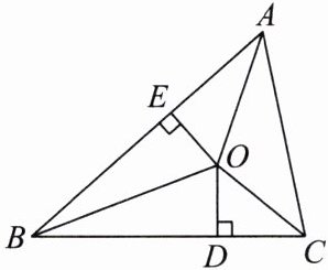 例 2 如图,在 $\triangle ABC$ 中, $\angle ABC$, $\angle ACB$ 的平分线交于点 $O$,连接 $AO$,过点 $O$ 作 $OD \perp BC$ 于点 $D$,$OE \perp AB$ 于点 $E$,$\triangle ABC$ 的面积是 16,周长是 8,则 $OD$ 的长是( )