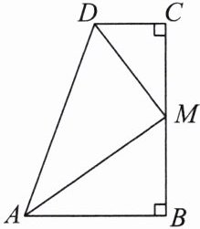 因为 $DM$ 平分 $\angle ADC$,且 $\angle C = 90°$,$M$ 在 $BC$ 上,$ME \perp AD$。