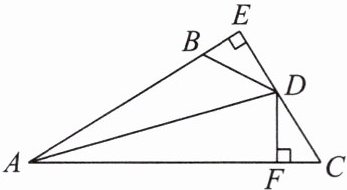 由于$DE \perp AB$的延长线于点$E$,$DF \perp AC$于点$F$,且$DE = DF$,