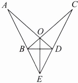例1 如图,$AD与BC相交于点O$,$OA = OC$,$\angle A = \angle C$,延长$AB$,$CD交于点E$,$BE = DE$,连接$OE$,$BD$. 求证:$OE垂直平分BD$.