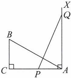 10. 如图,$\angle C = 90^{\circ}$,$AC = 10$,$BC = 5$,$AX\perp AC$,点$P和点Q从点A$出发,分别在线段$AC和射线AX$上运动,且$AB = PQ$。当点$P运动到AP = $______时,$\triangle ABC与\triangle APQ$全等。