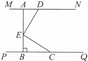 9. 如图,直线$MN// PQ$,$AB\perp PQ$,点$A$,$D在直线MN$上,点$B$,$C在直线PQ$上,点$E在AB$上,$AD + BC = 7$,$AD = EB$,$DE = EC$,则$AB$的长为______。