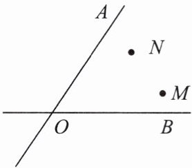 2. 如图,$AO$,$BO$是两条笔直交叉的公路,$M$,$N$是两个村庄,现准备建一个信号塔,要求信号塔到两个村庄的距离相等,并且到两条公路的距离也相等,同时在$\angle AOB$所在区域内,则信号塔应修在什么位置?请在图中标出信号塔的位置.
