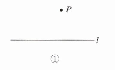 如图①,已知直线$l和l外一点P$,求作直线$l$的垂线,使它经过点$P$.