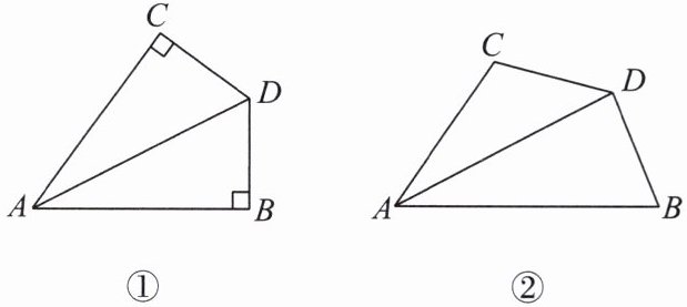 探究:如图②,$ AD $ 平分 $ \angle BAC $,$ \angle B + \angle C = 180^{\circ} $,$ \angle B < 90^{\circ} $. 求证:$ DB = DC $.