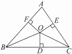 2. 如图,O 是△ABC 内一点,且点 O 到三边 AB,BC,CA 的距离 OF = OD = OE,若∠BAC = 70°,则∠BOC 的度数为( )
