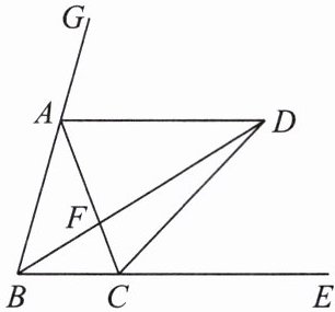 3. 如图,点$A$,$C分别在\angle GBE的边BG$,$BE$上,且$AB = AC$,$AD// BE$,$\angle GBE的平分线与AD交于点D$,连接$CD$.