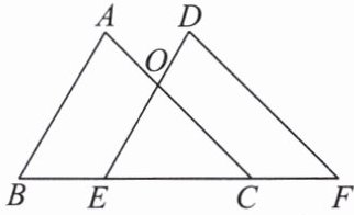 6. 如图,点$B$,$E$,$C$,$F$在同一条直线上,$AC与DE相交于点O$,$AB = DE$,$AB// DE$,$BE = CF$,求证:$AC// DF$。