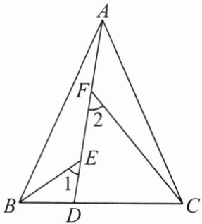 11. 如图,在$\triangle ABC$中,$AB = AC$,$AB>BC$,点$D在边BC$上,$CD = 2BD$,点$E$,$F在线段AD$上,$\angle 1= \angle 2= \angle BAC$。