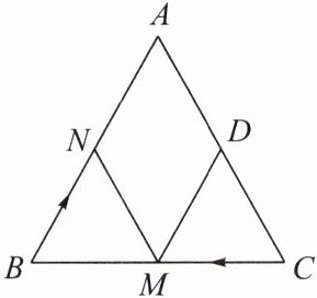 例1 如图,在等边三角形ABC中,AB = 10 cm,DC = 4 cm. N,M分别是AB,BC上的动点,如果点M,N都以3 cm/s的速度运动,点M在CB上由点C向点B运动,点N在BA上由点B向点A运动,它们同时出发,设两个点的运动时间为t s,当△BMN是直角三角形时,t的值为( )