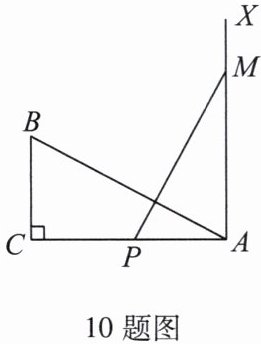 10. 如图,在 $ Rt\triangle ABC $ 中,$ \angle C = 90^{\circ} $,$ AC = 12 $,$ BC = 6 $,$ PM = AB $,点 $ P $,$ M $ 分别在 $ AC $ 和过点 $ A $ 且垂直于 $ AC $ 的射线 $ AX $ 上运动,要使 $ \triangle ABC $ 和 $ \triangle MPA $ 全等,则 $ AP $ 的长为______.