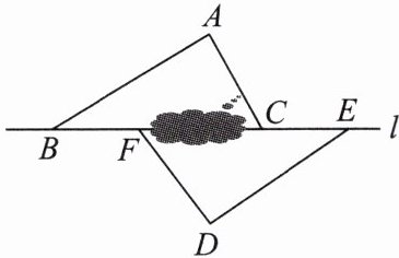 12. 如图,点 $ B $,$ F $,$ C $,$ E $ 均在直线 $ l $ 上(点 $ F $,$ C $ 之间不能直接测量),点 $ A $,$ D $ 在直线 $ l $ 两侧,测得 $ AB = DE $,$ AB // DE $,$ \angle A = \angle D $.