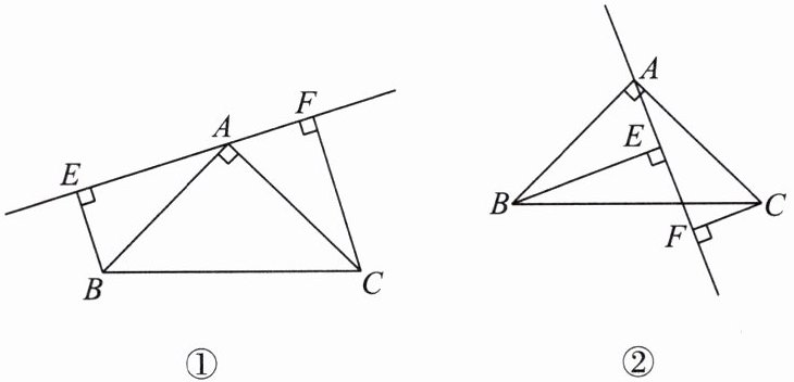 (1)如图①,过点 $ A $ 的直线与斜边 $ BC $ 不相交时,求证:$ EF = BE + CF $;