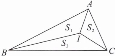 6. 如图,$ I $ 是 $ \triangle ABC $ 三条角平分线的交点,$ \triangle ABI $ 的面积记为 $ S_1 $,$ \triangle ACI $ 的面积记为 $ S_2 $,$ \triangle BCI $ 的面积记为 $ S_3 $,关于 $ S_1 + S_2 $ 与 $ S_3 $ 的大小关系,下列说法正确的是( )