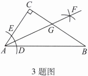 3. 如图,在 $ \mathrm{Rt} \triangle ABC $ 中,$ \angle C = 90^{\circ} $,以点 $ A $ 为圆心、适当长为半径作弧,分别交 $ AB $,$ AC $ 于点 $ D $,$ E $,再分别以点 $ D $,$ E $ 为圆心,以大于 $ \frac{1}{2}DE $ 的长为半径作弧,两弧交于点 $ F $,作射线 $ AF $ 交 $ BC $ 于点 $ G $,若 $ AB = 12 $,$ CG = 3 $,则 $ \triangle ABG $ 的面积是( )