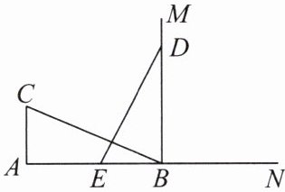 15. 如图,$ CA \perp AB $,$ AB = 24 $,$ AC = 12 $,射线 $ BM \perp AB $,一动点 $ E $ 从点 $ A $ 出发以 $ 3 \mathrm{cm/s} $ 的速度沿射线 $ AN $ 运动,$ D $ 为射线 $ BM $ 上一动点,随着点 $ E $ 的运动而运动,且始终保持 $ ED = CB $。当点 $ E $ 运动 s 时,$ \triangle DEB $ 与 $ \triangle BCA $ 全等。