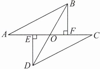 10. 如图,点 $ A $,$ E $,$ F $,$ C $ 在同一条直线上,$ BF \perp AC $ 于点 $ F $,$ DE \perp AC $ 于点 $ E $,连接 $ BD $,交 $ EF $ 于点 $ O $,且 $ O $ 为 $ EF $ 的中点,$ AE = CF $。有下列结论:① $ \triangle EOD \cong \triangle FOB $;② $ AO = CO $;③ $ AB = CD $;④ $ AB // CD $。其中正确的是( )