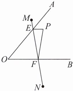 11.如图,点$P在\angle AOB$内,$M,N分别是点P关于OA,BO$的对称点,$MN分别交AO,BO于点E,F$,若$\triangle PEF的周长为20\ cm$,求$MN$的长.