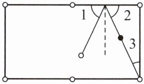 7.数学在我们的生活中无处不在,就连小小的台球桌上都有数学问题.如图,$\angle 1= \angle 2$,若$\angle 3= 25^{\circ}$,为了使白球反弹后能将黑球直接撞入底袋中,那么击打白球时,必须保证$\angle 1$的度数为( )