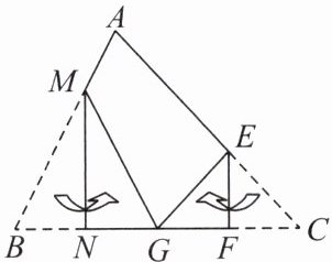 的点$G$处,线段$MN,EF$为折痕.若$\angle A= 94^{\circ}$,则$\angle MGE$的度数为 .