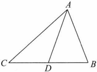2. 如图,在$\triangle ABC$中,$AD是边BC$上的中线,$\triangle ABD的周长比\triangle ACD的周长多3cm$。若$AB = 10cm$,则$AC$的长为( )
