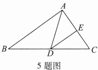 5. 如图,$D是边BC$的中点,$E是边AC$的中点,若$S_{\triangle ADE} = 1$,则$S_{\triangle ABC}$的值为______。