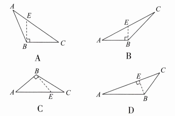 1. 如图,在$\triangle ABC$中,线段$BE表示\triangle ABC的边AC$上的高的是( )
