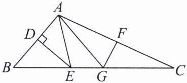9. 如图,在△ABC 中,AB 的垂直平分线分别交 AB,BC 于点 D,E,AC 的垂直平分线分别交 AC,BC 于点 F,G. 若 BG = 9,CE = 11,且△AEG 的周长为 16,则 EG 的长为______。