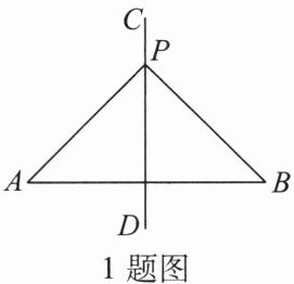 1. 如图,直线 CD 是 AB 的垂直平分线,P 为直线 CD 上一点,若 PA = 5,则 PB 的长为( )