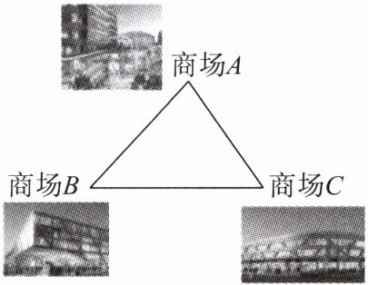 1. 如图,三个商场分别坐落在 $ A $,$ B $,$ C $ 所在位置,现要规划一个地铁站,使得该地铁站到三个商场的距离相等,则该地铁站应建在( )
