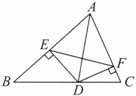 6. 如图,在 $ \triangle ABC $ 中,$ AD $ 是 $ \triangle ABC $ 的角平分线,$ DE $,$ DF $ 分别是 $ \triangle ABD $ 和 $ \triangle ACD $ 的高,连接 $ EF $。求证:$ AD $ 垂直平分 $ EF $。