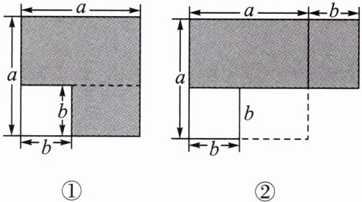 如图①,从边长为$a的大正方形中剪掉一个边长为b$的小正方形,将阴影部分沿虚线剪开,拼成图②所示的长方形.