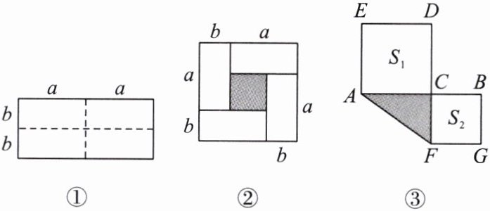 (1)观察图②,请写出$(a + b)^{2}$,$(a - b)^{2}$,$ab$之间的等量关系:______.