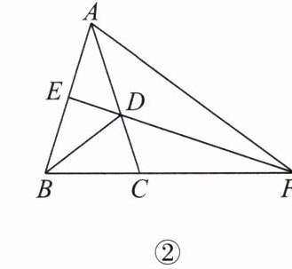 (2)如图②,$E是AB$的中点,连接$ED$并延长,交$BC的延长线于点F$,连接$AF$。求证:$AF = AB + BC$。