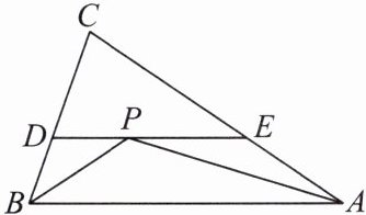 10. 如图,在$\triangle ABC$中,$BP平分\angle CBA$,$AP平分\angle CAB$,过点$P的直线DE// AB$,交$BC于点D$,交$AC于点E$。若$CB = 12$,$AC = 18$,则$\triangle CDE$的周长是______。